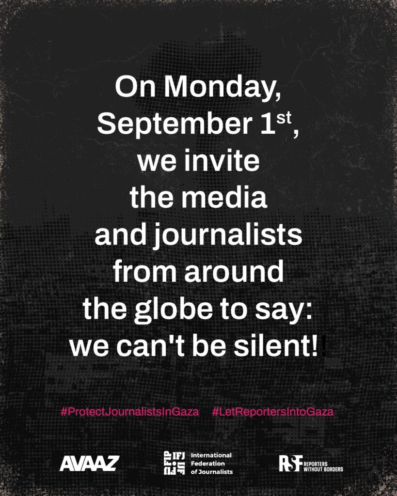 Sınır Tanımayan Gazeteciler ve Avaaz ile birlikte, dünyanın dört bir yanındaki medya kuruluşlarını, gazetecileri ve onların sendika ve derneklerini “Yeter artık!” demek için davet ediyoruz.